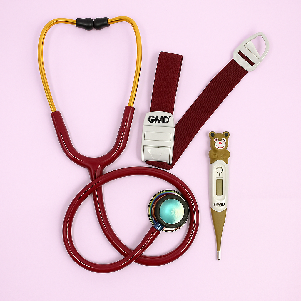 ✔️ El fonendoscopio OIS 300 ofrece excelente sensibilidad acústica, ideal para auscultar con claridad a diferentes especies. ✔️ El termómetro digital de punta flexible permite una medición cómoda y segura, incluso en pacientes animales inquietos. ✔️ El torniquete GMD brinda practicidad y resistencia en cada procedimiento clínico.